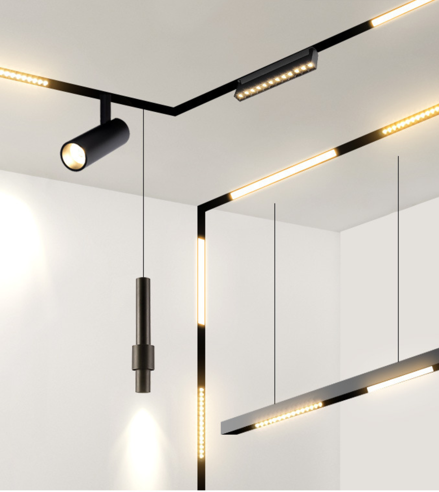 Đèn ray nam châm là hệ đèn được gắn di động vào các thanh nam châm được cố định trên trần và mang lại những ưu điểm vượt trội so với đèn Led thông thường: